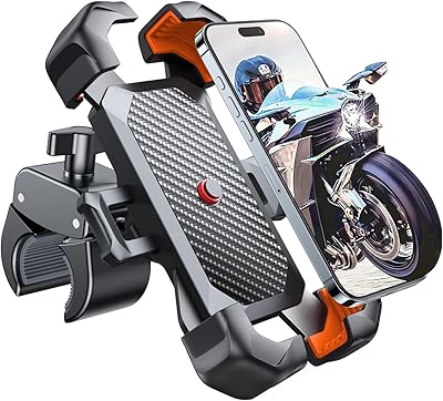 JOYROOM Motorcycle Phone Mount, [1s Auto Lock][100mph Military Anti-Shake] Bike Phone Holder for Bicycle, [10s Quick Install] Handlebar Phone Mount, Compatible with iPhone, Samsung, All Phone, Orange